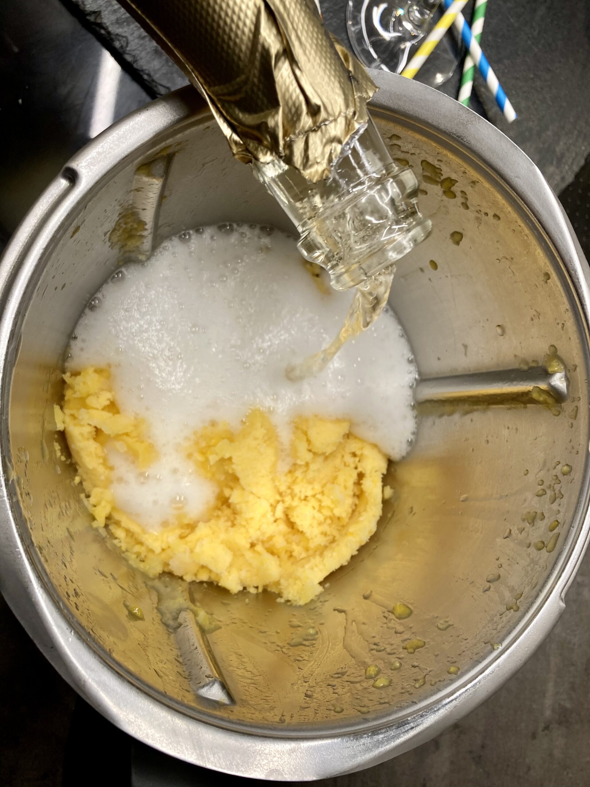 • 1/3 des Sektes dazugeben 10 Sek/ Stufe 10 pürieren.
