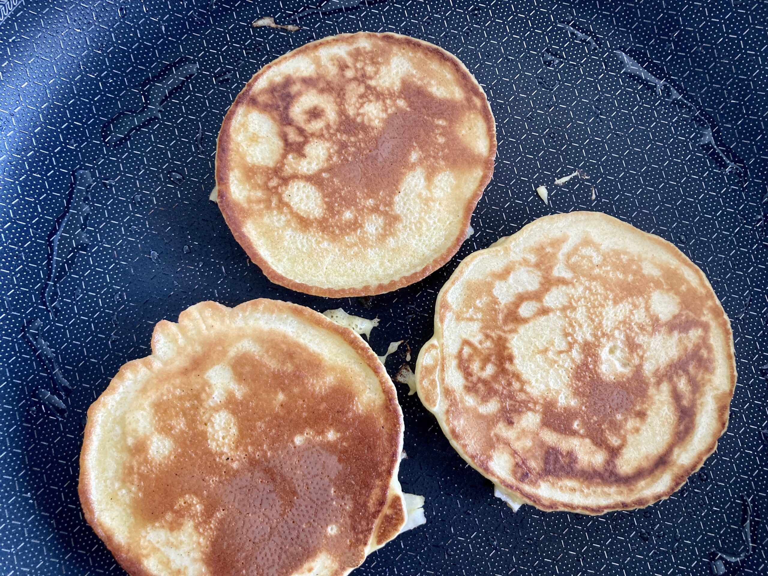 • Die fertigen Pancakes im Backofen bei 50 Grad warmhalten.